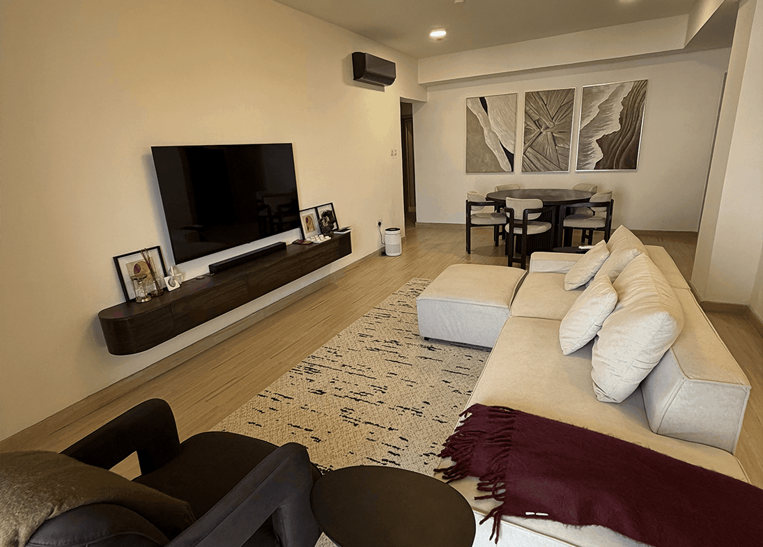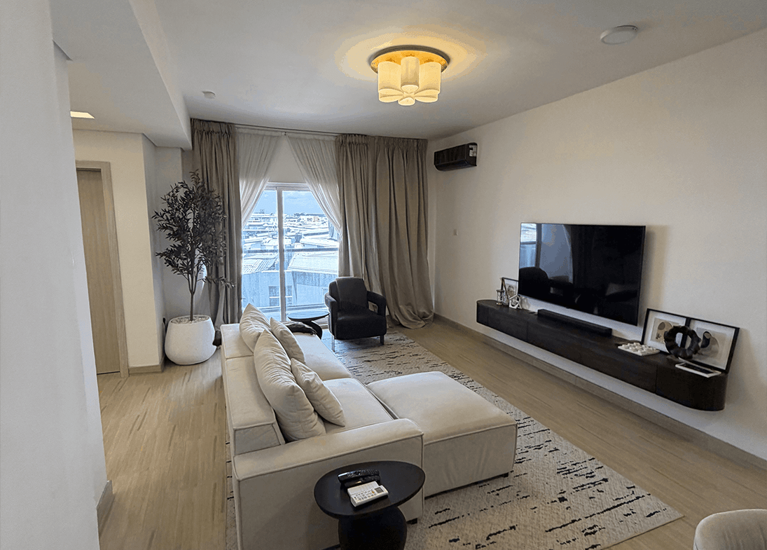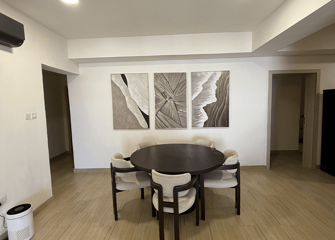 Nestled within the Ikate enclave of Lagos, this exquisitely furnished 4-bedroom, all-ensuite apartment features a modern open-plan kitchen, spacious living areas, and a private balcony designed for refined urban living.
