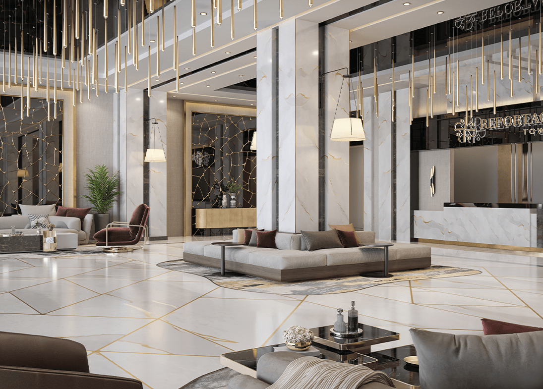 Grand reception lobby with concierge-style services